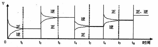 可见在t1、t3、t5、t7时反应都达到平衡,如果t2、t4、t6、t8时都只改变了一个反应条件,试判断改变的是什么条件。