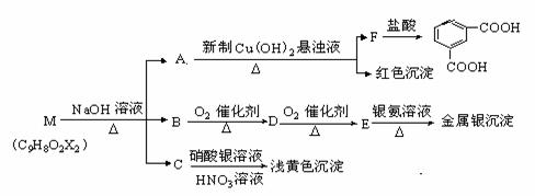现有分子式为C9H8O2X2(X为一未知元素)的物质M,可在一定条件下发生上述一系列反应 :