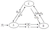 右图表示绿色植物体内某些代谢过程中物质的变化,A、B、C分别表示不同的代谢过程。以下表述正确的是