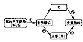 (1)图中①表示的是该花粉培养过程中的 过程,②表示的是 过程,X代表的是 。