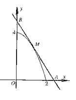 的图像C上一点,过M点作曲线C的切线与x轴、y轴分别交于点A,B,O是坐标原点,求△AOB面积的最小值。