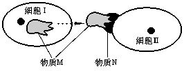 下图表示两细胞间发生某种信息传递的过程。细胞I、II以及物质M、N的名称与图示含义相符的是 ( )