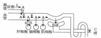 (3)人在禁食一段时间后,4处A的浓度比3处A的浓度 ,引起这种变化的两种激素是