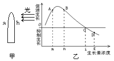 11.如图所示,图甲表示胚芽鞘受到单侧光的照射;图乙表示不同浓度生长素溶液对胚芽鞘切断生长的影响,如果图甲中b处的生长素浓度为m,设a处的生长素浓度为X,则: