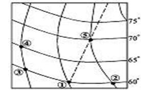 (3).若此时图中⑤地为10时,此时北京时间 ,⑤地夜长是 小时,
