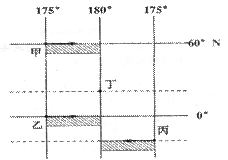 7.甲、乙、丙三处的三艘船同时出发驶向180°经线,而且同时到达,速度最快的是( )