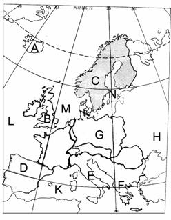 (1) 将标注字母的岛屿、半岛的名称填在下列空格上