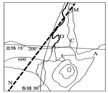 32. (10分)下图为世界某区域简图,MN表示晨线,与30°E经线所成的角为15°,