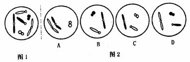 23.下图1代表某生物体细胞的细胞核,图2中的哪一个图不可能是这种生物所产生的配子?