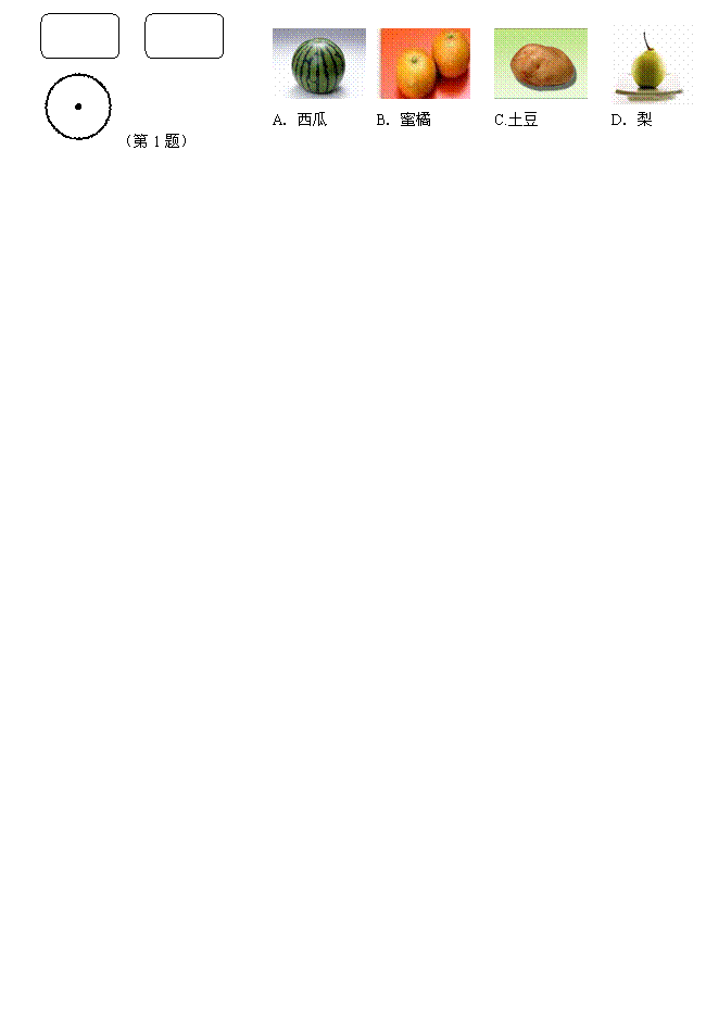 1.下面三视图表示的可能是宜昌四种特产:西瓜、蜜橘、梨、土豆中的( )。