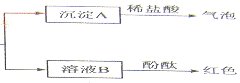 ③向A、B两溶液中分别加入盐酸, A中没有明显变化现象,B中的现象是溶液中有气泡产生