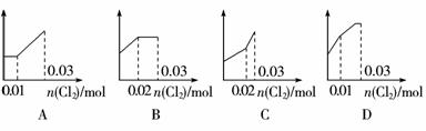 5.(2009年衡水模拟)将0.03 mol Cl2缓缓通入含有0.02 mol H2SO3和0.02 mol HBr的混合液中,则溶液中H+的浓度与通入的氯气的物质的量的关系是下列图中的(纵坐标都表示氢离子的物质的量浓度)( )