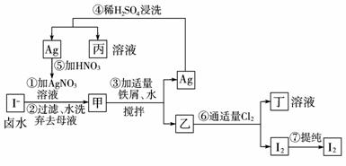 10.在已经提取氯化钠、溴、镁等化学物质的富碘卤水中,采用如图工艺流程生产单质碘: