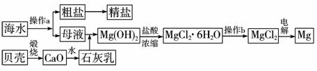 ②操作b是在____________气氛中进行,若在空气中加热,则会生成Mg(OH)Cl,写出有关反应的化学方程式___________________ 。