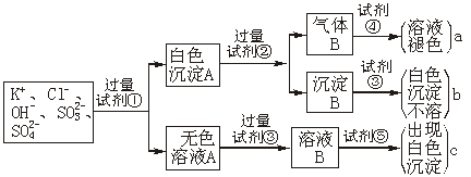 ,为检验溶液中所含的各阴离子,限用的试剂有:盐酸、硝酸、硝酸银溶液、硝酸钡溶液、品红溶液和酚酞试液。检验其中OH-的实验方法从略,检验其他阴离子的过程如下图所示。