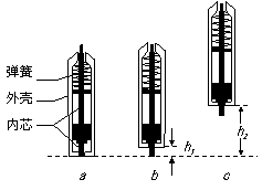 ③碰后,内芯与外壳以共同的速度一起上升到外壳下端距桌面最大高度为h2处(见题24图c)。
