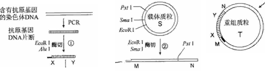 6.下表为几种限制酶识别的序列及切割位点,下图所示,抗原基因用EcoRⅠ和AluⅠ酶切,载体质粒上有EcoRⅠ、SmaⅠ、PstⅠ酶的识别位点,但只用EcoRⅠ和SmaⅠ酶切,再通过DNA连接酶形成重组质粒T。若再用EcoRⅠ和SmaⅠ酶切重组质粒T,将可得到DNA片段的种类数是