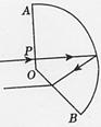 。现有一细光束,垂直射到AO面上,经玻璃砖反射、折射后,经OB面平行返回空气中,