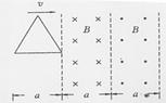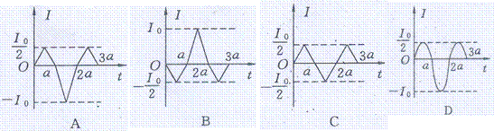 17.如图所示,一个边长为a、电阻为R的等边三角形线框,在外力作用下以速度v匀速穿过宽度均为a的两个匀强磁场,这两个磁场的磁感应强度大小相等,方向相反。线框运动方向与底边平行且与磁场边缘垂直。取逆时针方向的电流为正,若从图示位置开始计时,关于线框中产生的感应电流I与运动时间t之间的函数图