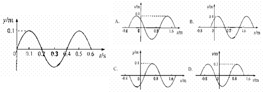 一列简谐横波沿x轴正向传播,波速v=4 m/s,已知坐标原点(x=0)处质点的振动图象如下图所示,在下列4幅图中能够正确表示t=0.15 s时刻波形的图是