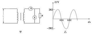21、理想变压器的连接电路如图甲所示,原副线圈匝数比为10∶1,当输入电压波形如图乙所示时,电流表读数为2 A,已知各电表均为理想电表,则