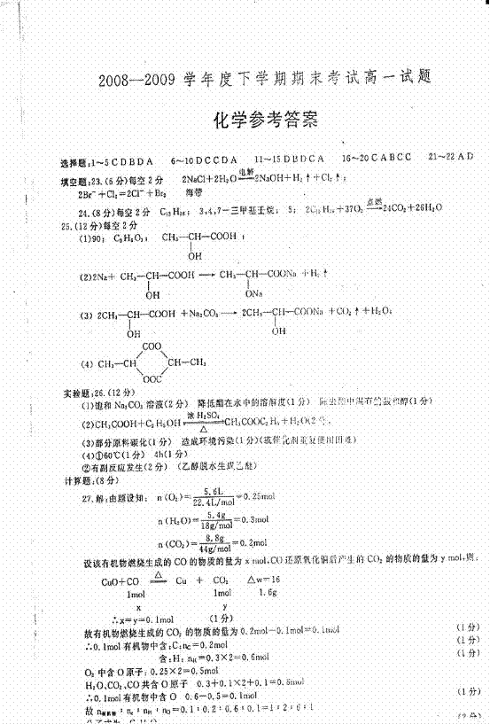 22. 一定质量的某有机物与足量金属钠反应,可得VAL气体。相同质量的该有机物与适量的