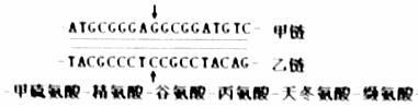 9.下图是某DNA双链的片段和由它控制合成的一段多肽链(甲硫氨酸的密码子是AUG),下列说法中,错误的是 ( )