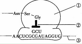 30.(10分)右图表示细胞内遗传信息传递的某个阶段,其中①②③分别表示相应的结构或物质,Asn、Ser、Gly为三种氨基酸,分别是天冬酰胺(C4H8O3N2)、丝氨酸(C3H7O3N)、甘氨酸(C2H5O2N),根据所学知识回答: