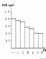 (3)为了进一步验证NO2和水的反应,某同学设计了丙装置。先关闭弹簧夹 (填a、b、c,后同),再打开弹簧夹 ,才能使NO2气体充满②试管。 (4)当气体充满②试管后,将铜丝提起与溶液脱离,欲使烧杯中的水进入②试管应如何操作 。 (5)当②试管中的NO2和水充分反应,所得溶液物质的量浓度的最大值是 。(不考虑NO2与N2O4的转化且该实验条件下气体摩尔体积设为Vm L/mol) 2. (1)氯气可以用于漂白、消毒的原因是因为能与水作用形成具有 ▲ 性的次氯酸,相关反应的离子方程式为 ▲ ; (2)在调查某室外游泳池夏季池水消毒情况时,小组成员了解到,该游泳池每周一上午8∶00换水,然后通入氯气消毒,通常游泳池水的含氯量控制在0.5 mg/L至1.0mg/L之间时,效果最好。右图是该小组测定的每天19∶00时泳池中水的氯含量,有哪几天使用泳池不安全 ▲ ; (3)你认为哪几天的天气炎热、阳光强烈 ▲ , 说出一种理由是 ▲ ; (4)在对泳池水中通入氯气消毒时,当发生氯气泄漏时, 应立即关闭氯气罐,还应采取下列自救方法 ▲ 。(选填序号) A、用湿润的毛巾捂住口鼻跑向低处 B、用浸湿小苏打或肥皂水的毛巾捂住口鼻跑向高处 C、用浸湿浓氨水的毛巾捂住口鼻匍匐跑至安全处 D、用浸湿食盐水的毛巾捂住口鼻顺风跑至安全处 (5)小型泳池通常使用漂白液(NaClO溶液)而非氯气来消毒池水,试举出使用漂白液而非氯气的一项理由 ▲ ; (6)请再写出你能知道的能用于饮用水消毒的消毒剂(至少写三种,否则不得分) ▲ 请在你书写的药品中选择一种你认为最好的带上飞机,并说明它的原因。选择 ▲ 原因 ▲ 。 答案(1)强氧化 (1分); Cl2 + H2O (2)星期六、星期日 (1分)(3)星期四、星期六 (1分); 阳光强烈HClO更易分解,致含氯量下降明显 (1分) (4)B (2分) (5)NaClO更稳定,便于储存和运输(1分); (6)氯水、漂白粉、二氧化氯、双氧水、过氧乙酸、臭氧及高铁酸钠等(2分) 选择 漂白粉、(高铁酸钠)(1分) 原因:这些物质具有强氧化性,具有杀菌消毒作用,比其他药品易于存放运输,且安全(1分) 同步练习册答案 湖北省互联网违法和不良信息举报平台 | 网上有害信息举报专区 | 电信诈骗举报专区 | 涉历史虚无主义有害信息举报专区 | 涉企侵权举报专区 违法和不良信息举报电话:027-86699610 举报邮箱:58377363@163.com版权声明:本站所有文章,图片来源于网络,著作权及版权归原作者所有,转载无意侵犯版权,如有侵权,请作者速来函告知,我们将尽快处理,联系qq:3310059649。 ICP备案序号: 沪ICP备07509807号-10 鄂公网安备42018502000812号 |