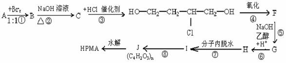 1.[江苏省常州市第三中学2009届高三化学11月模拟试卷. ]已知水解聚马来酸酐得到的有机物HPMA被普遍用在锅炉中作阻垢剂。按下图步骤可以用不饱和烃A合成HPMA