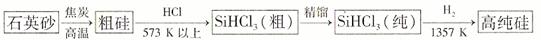 ①写出由纯SiHCl3制备高纯硅的化学反应方程式 。 ②整个制备过程必须严格控制无水无氧。SiHCl3遇水剧烈反应生成H2SiO3、HCl和另一种物质,写出配平的化学反应方程式 ;H2还原SiHCl3过程中若混O2,可能引起的后果是 。21世纪教育网 (2)下列有头硅材料的详法正确的是 (填字母)。 A.碳化硅化学性质稳定,可用于生产耐高温水泥 B.氮化硅硬度大、熔点高,可用于制作高温陶瓷和轴承 C.高纯度的二氧化硅可用于制造高性能通讯材料--光导纤维 D.普通玻璃是由纯碱、石灰石和石英砂制成的,其熔点很高 E.盐酸可以与硅反应,故采用盐酸为抛光液抛光单晶硅 (3)硅酸钠水溶液俗称水玻璃。取少量硅酸钠溶液于试管中,逐滴加入饱和氯化铵溶液,振荡。写出实验现象并给予解释 。 (1)①SiHCl3+H2 ②3SiHCl3+3H2O===H2SiO3↓+H2↑+3HCl 高温下,H2遇O2发生爆炸。 (2)BC (3)生成白色絮状沉淀,又刺激性气味的气体生成;解释:
