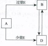 已知A、B、D、E均为中学化学常见单质或化合物,它们之间的转化关系如图所示(部分产物略去)。