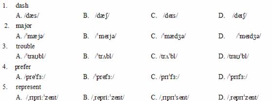 从每小题的A、B、C、D四个选项中,找出所给单词的正确读音,并在答题卡上将该选项涂黑。