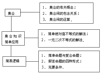 本章知识主要分为集合、简单不等式的解法(集合化简)、简易逻辑三部分: ![]()