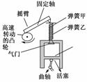 9.如图22是内燃机排气门工作简图,凸轮运转带动摇臂,摇臂将气门压下,气缸内废气排出,之后,气门在弹簧的弹力作用下复位,凸轮、摇臂、弹簧协调动作,内燃机得以正常工作.所有型号内燃机气门弹簧用法都有一个共同的特点,就是不用一只而用两只,并且两个弹簧劲度系数不同,相差还很悬殊.关于为什么要用两只劲度系数不同的弹簧,以下说法正确的是( )