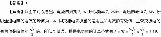 D.用交流电压表测得电阻两端的电压是5 V![]()