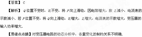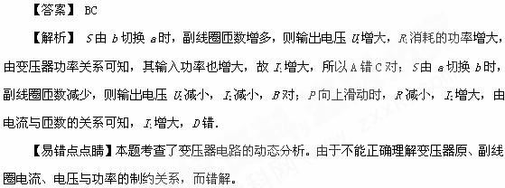 C.保持P的位置及U1 不变,S由b切换到a,则I1增大 ![]()