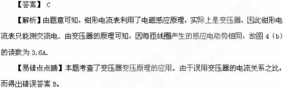 [5]钳形电流表的外形和结构如图4(a)所示.图4(a)中电流表的读数为1.2A .图4(b)中用同一电缆线绕了3匝,则 (