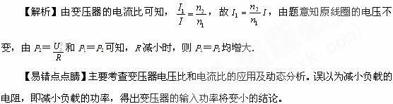 [7] 如图所示,一理想变压器原、副线圈匝数分别为nl和n2, 当负载电阻R中流过的电流为I时,原线圈中流过的电流为 ;现减小负载电阻R的阻值,则变压器的输入功率将