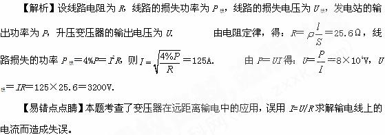 kW,输出电压为4kV,通过理想变压器升压后向80km远处供电.已知输电导线的电阻率为
