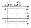 [10]如图所示,矩形线圈abcd在匀强磁场中可以分别绕垂直于磁场方向的轴P1和P2以相同的角速度匀速转动,当线圈平面转到与磁场方向平行时![]()