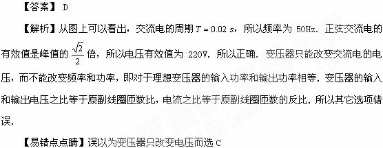 1]一正弦交流电的电压随时间变化的规律如图所示.由图可知( )![]()