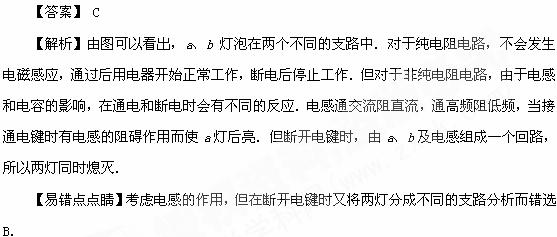 为开关,关于两灯泡点亮和熄灭的先后次序,下列说法正确的是 ( )![]()