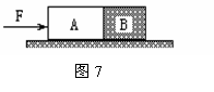 如图7所示,正方体物A、B紧靠着放在水平面上。mA=4kg, mB=2kg,A与地面间的摩擦系数