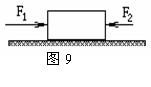 21(9分)如图9,一重为40N的木块放在水平桌面上,在水平方向共受三力即F1,F2和摩擦力作用,木块处于静止。其中F1=13N,F2=6N。已知木块与地面间的动摩擦因数为μ=0.2,设最大静摩擦力等于滑动摩擦力,求: