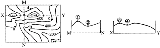 2、图中MN、XY的交点,在剖面图上对应的点是( )