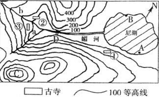 (3)在图中D处拟建一水坝(图中 处),水坝建成后,三座古寺中有可能被水淹的是 。