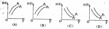 2Z(g)(正反应为放热反应),在不同温度、不同压强(p1>p2)下,达到平衡时,混合气体中Z的体积分数