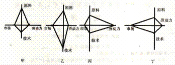 21.下图是工业区位选择模式图,其中线段长短表示影响程度大小下列情况与甲、乙、丙、丁四图相符的是
