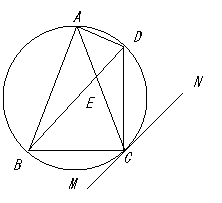 是内接于⊙O,AB=AC,直线MN切⊙O于点C,弦BD//MN,AC与BD相交于点E。